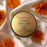 In addition to our signature tallow base, this balm is enriched with our trusted jojoba oil, chosen for its ability to closely mimic the skin’s natural oils, and premium organic sea buckthorn berry oil, prized for its vibrant nutrient profile and skin-rejuvenating properties. Together, these oils enhance the balm’s restorative power while preserving its gentle, skin-compatible nature.